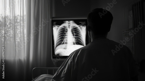 Doctor Examines Lung X-ray Results in Hospital Setting Highlighting Medical Analysis and Patient Care