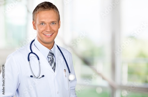 doctor, male, man, happiness, portrait, people, smiling, one person, ethnic, isolated, professional occupation, stethoscope, white background, labcoat, adult, confidence, one man only, vertical, toothy smile, adults only, waist up