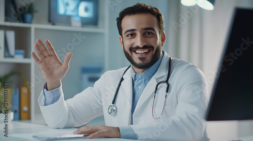 doctor, stethoscope, medicine, medicals, health, hospital, care, health care, people, smile, computer, professional, photogenic, physician, coat, clinic, uniform, person, smiling, confident, standing, work, laptop, nurse, office