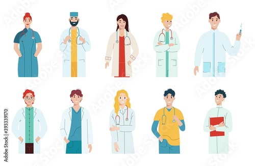 doctor, portrait, hospital, staff, medicals, men at work, health care, medic, paramedic, character, surgeon, physician, nurse, intern, specialist, set, male, female, uniform, profession, occupation, practitioner, clinical, healer, professional, healer, man, woman, vector, illustration
