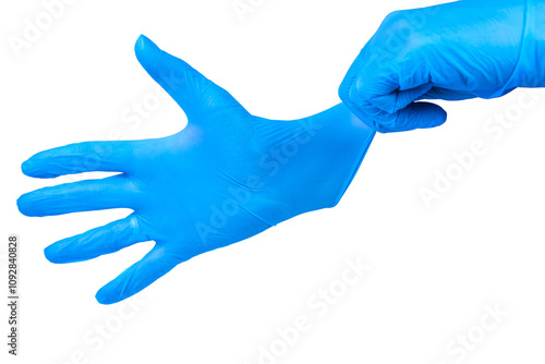 hand, medicals, latex, doctor, disposable, operation, operating, warn, information, attention, put on, instructing, white, background, copy space, medicine, procedure, poster, awareness, blue, rubber, safety, glove, surgical, isolated, wearing, surgeon, equipment, health, sterile, nurse, care, finger, hospital, protective, protection, laboratory, putting, closeup, exam, human, male, people