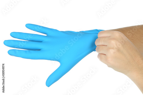 putting, protective, isolated, white, background, blue, care, clean, clinical, closeup, doctor, equipment, exam, exam, finger, free, glove, hand, health, hospital, laboratory, laboratory, latex, material, medicals, medicine, nurse, operating, operation, prevention, protect, protection, responsibility, risk, rubber, safety, sanitize, sterile, supply, surgeon, surgery, surgical, tool, treatment, wearing, work