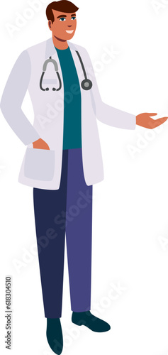 Doctor with a stethoscope. A man doctor in a medical uniform. Family doctor. Medical worker, paramedic.Flat vector illustration isolated on white background