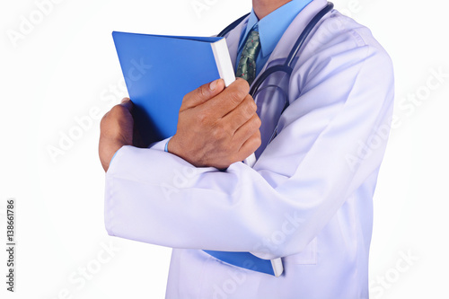 doctor, isolated, male, white, background, medicals, stethoscope, health care, adult, hospital, medicine, man, uniform, hand, care, professional, occupation, practitioner, young, person, health, human, paper, work, up, clinic, job, screen, specialist, physician, digital, technology