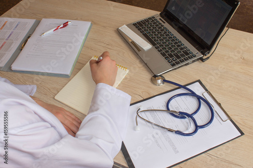Doctor working in hospital writing a prescription. Medicine doctor's working table