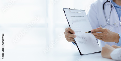 Doctors are giving advice on treatment to patients in hospital examination rooms, treating diseases from specialists and providing targeted treatment. Concepts of medical treatment and specialists.