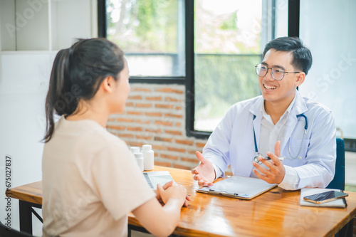 Doctors are inquiring about the patient's symptoms, notifying the results of the physical examination, and recommending treatment and health care.