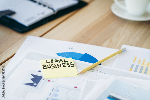 Documents and tools arranged on a desk showcasing business preparation with a legal note and data charts