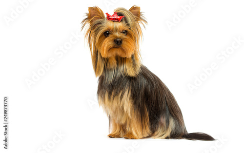 yorkshire, terrier, white, dog, background, isolated, animal, cute, puppy, studio, breed, hair, pet, purebred, canino, pedigree, portrait, mammal, domestic, brown, looking, fur, adorable, 1, little, young, pedigreed, small, front, doggy, sitting, camera, friends, long