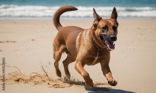dog, beach, running, sand, ocean, tail, ear, tongue, happy, playful, energetic, joyful, outdoors, exercise, fun, excitement, adventure, relaxation, leisure, recreation, companionship, loyalty, love, happiness, joy, wave, animal, pet, puppy, canino, cute, breed, mammal, brown, portrait, boxer, isolated, domestic, pedigree, studio, white, doggy, purebred, dog, nature, friends, sitting, funny
