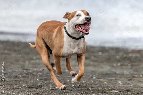 dog, pet, animal, terrier, canino, staffordshire, brown, cute, pitbull, bull, breed, domestic, portrait, mammal, pedigree, grass, white, young, purebred, collar, doggy, running, beach