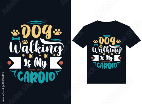 Dog Walking Is My Cardio illustrations for print-ready T-Shirts design