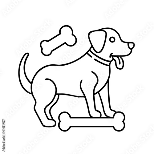 dog with bone icon, dog with bone line art - simple line art of dog with bone, perfect for dog with bone logos and icons