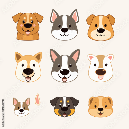 animal, cartoon, cat, adjusting, dog, vector, icon, bear, face, head, illustration, pet, rabbit, baby, pig, fox, panda, cow, collection, lion, zoo, character, fun, wild
