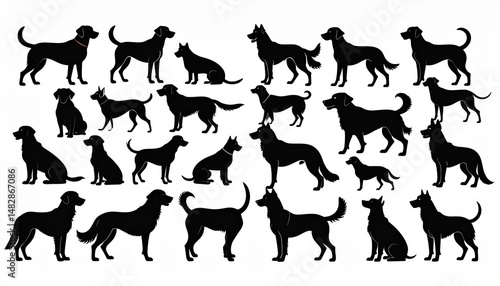 dog, silhouette, set, vector, design, animal, pet, canino, black, illustration, collection, graphic, breed, shape, outline, art, symbol, mammal, domestic, isolated, puppy, nature, abstract, paw, tail, portrait, sitting, standing, running, jumping, playing, walking, group, different, various, drawing, simple, modern, decorative, element, background, template, artistic, creative, concept, icon, signs, pictogram, wildlife