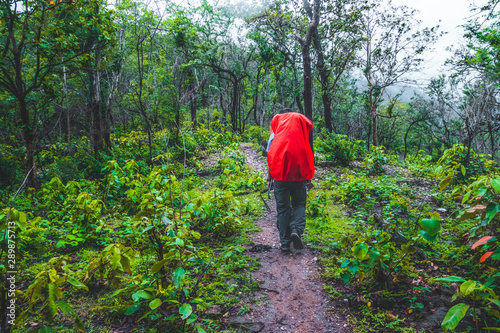 Doi Luang Tak, Tak Province, Thailand. AUGUST 31,2019: Hikers are trekking to the rain forest at Doi Luang Tak