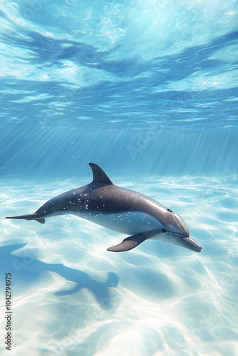 Dolphin in the underwater world. Underwater dolphin. Dolphin underwater. Dolphin undersea, Dolphins Leaping" In the sparkling blue ocean, dolphins leap joyfully into the air