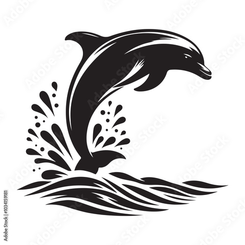 Dolphin jumping out of water silhouette vector black colour white background