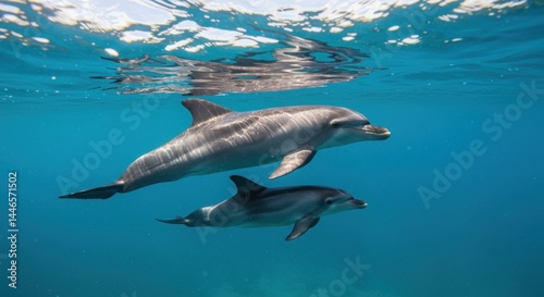 dolphin, underwater, sea, ocean, marine life, animal, mammal, nature, aquatic, wildlife, swimming, blue, water, sunlight, surface, calm, serene, beautiful, graceful, playful, pod, family, underwater photography, marine mammal, cetacean, curious, intelligent, freedom, environment, ecosystem, ocean life, calmness, peace, depth, submerged, dive