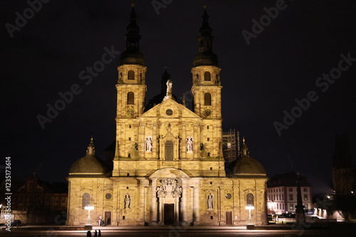 cupola, church, cathedral, night, baroque, architecture, building, religion, bishopric, catholic, tourist attraction, landmark, hesse, city, german, europa, dark, light