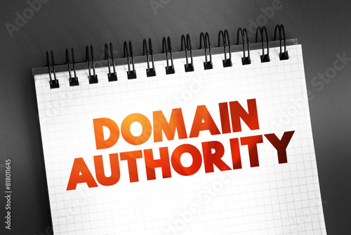 Domain authority - website describes its relevance for a specific subject area or industry, text concept on notepad