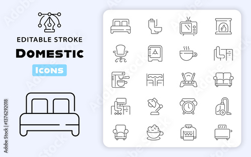 Domestic house elements vector outline icon set. Furniture and home interior icons