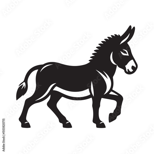 donkey, silhouette, icon, vector, black, white, animal, wildlife, farm, mammal, nature, tail, ear, hoof, outline, simple, graphic, minimal, symbol, design, logotype, illustration, shape, shadow, isolated, template, clip art, contour, profile, wild, fauna, monochrome, flat, clean, crisp, modern, pet, domestic, art, element, drawing, print, emblem, vignetting, cute, minimalistic, natural, rural, beast
