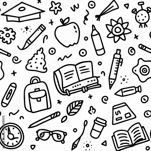 school, education, back, to, supply, pattern, doodle, learning, children, student, classroom, book, apple, graduation, teacher, study, cognition, design, graphic, illustration, background, texture, vector, cute, happy, fun, children, children, college, university, paper, print, office, workplace, art, vignetting, black, white, wallpaper, template