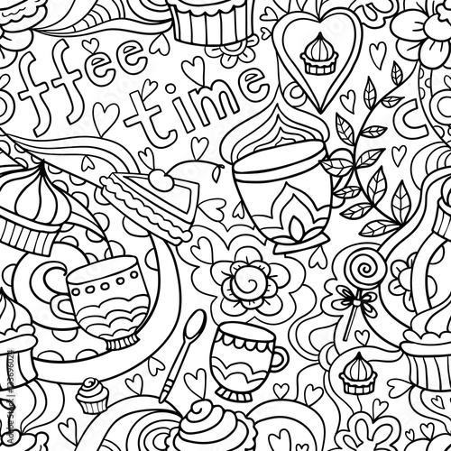 Doodle seamless pattern about coffee or tea time - coffee, tea