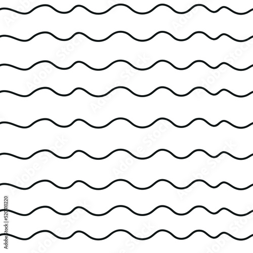 Doodle waves seamless pattern, minimalistic black and white background, hand drawn wavy lines
