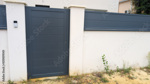 pedestrian, portal, high, grey, metal, home, gate, entrance, house, garden, small, grey, door, new, wall, urban, modern, classic, access, steel, aluminium, suburb, city, real, iron, private, background, front, suburb, street, design, exterior, aluminium, metallic, aperture, clapper, entry, pillar, protection, fence, barrier, security, frontend, building, suburban, residential, town, architecture