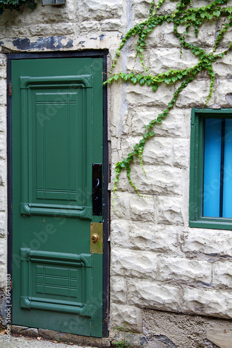 door, entry, doorway, door handle, handle, enter, building, architecture, detail, old, vintage, antique, village, residence, green, stone, brick