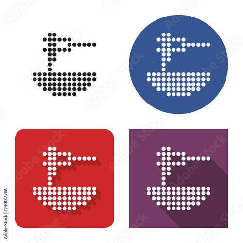 Dotted icon of spaghetti in four variants. With short and long shadow