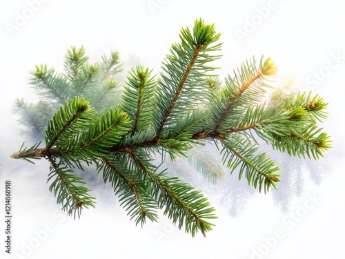 Double Exposure Fir Tree Branch: Nature Photography, White Background Stock Image
