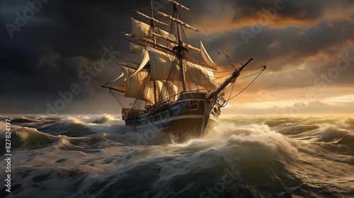 tall ship, rough, rough sea, created, ai, sailing vessel, double exposure, double, exposure, tall, ship, sea, boat, sailing, sail, sailboat, ocean, water, sunset, vessel, travel, nautical, mast, sky, transportation, summer, old, galleon, wind
