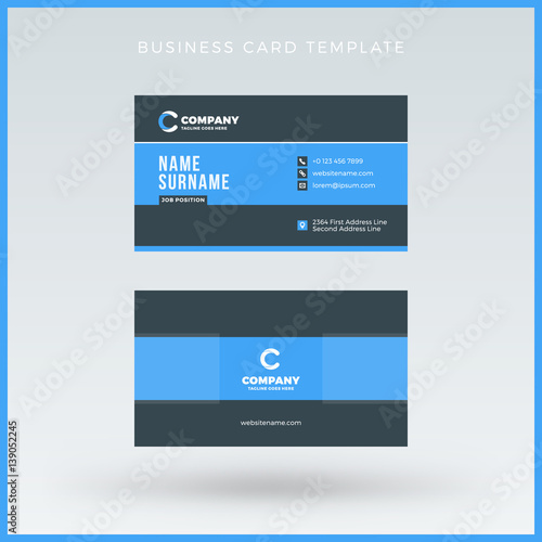 Double-sided Blue Business Card Template. Vector Illustration. Stationery Design