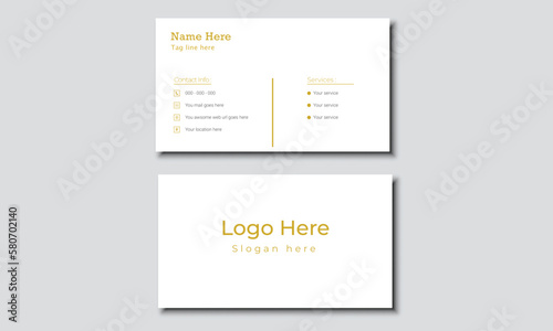 Double-sided Modern Business Card. White & Gold color business card. Clean professional business card template. Simple Vector Design.
