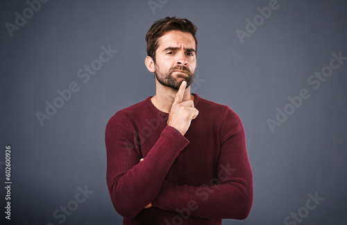 doubt, thinking, portrait, man, studio, face, background, male, person, space, grey, confused, question, thoughtful, thinks, choice, thought, decision, uncertain, uncertain, sceptical, grey background, confuse, young, people, model, alone, adult, guy, modern, grey, head, individual, idea, head shot, worried, curious, human, mind, solution, worry, why, wonder, contemplating, anxious, confusion, review, wondering