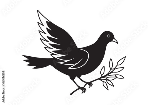 Dove with Branch Silhouette Vector