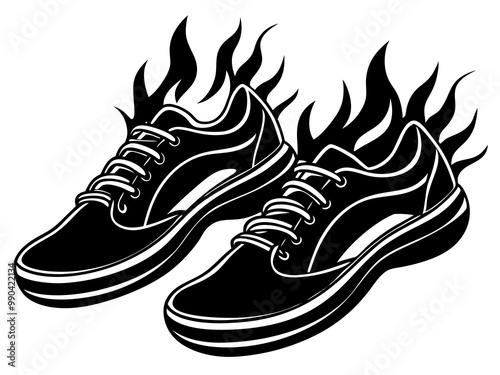 Download Fiery Running Shoes Vector Silhouette Illustration Eps File For Design , Fiery Running Shoes: Vector Silhouette Illustration