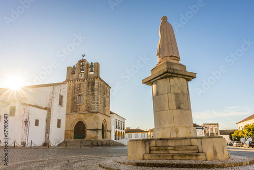 Downtown of Faro with Cathedral of Se in the morning, Algarve, Portugal