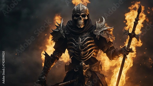 dragon demon skeleton in the fire A burning demon skeleton knight who has been resurrected by a necromancer and is leading an army