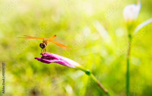 Dragonfly on pink flowers