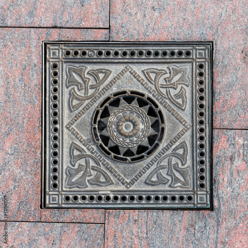 pattern, art, manhole cover, metal, old, architecture, decoration, sewer, stone, sewerage, cap, mosaic, detail, cover, frame, ornament, design, vintage, city, texture, culture