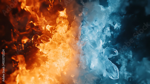 Dramatic abstract background illustrating a powerful clash between intense fire and freezing ice elements