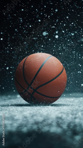 Dramatic Basketball Closeup Night Game Motion Blur Snow