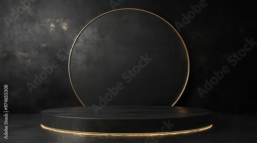 dramatic black friday sale scene with elevated black podium against dark background gold accents and floating elements creating luxury atmosphere 3d rendered product showcase with dynamic lighting