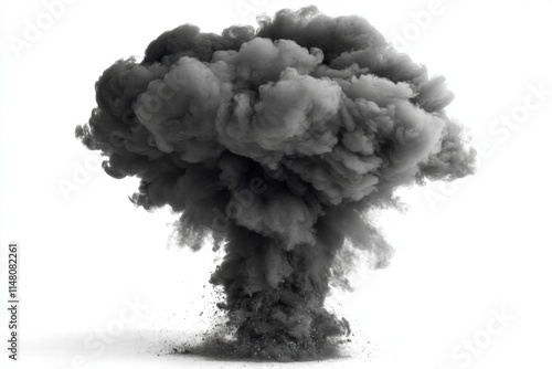 Dramatic Black Smoke Explosion Rising Into the Air Against a White Background, Creating an Intense and Striking Visual for Impactful Imagery