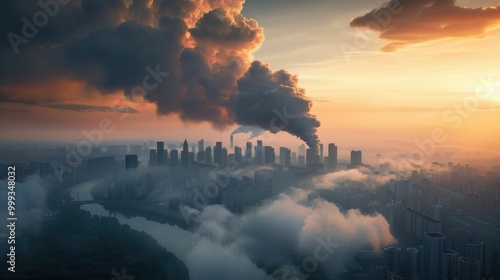 city, urban, landscape, pollution, environment, smoke, smog, fog, haze, cloud, sunset, sunrise, sky, dramatic, industrial, building, architecture, skyline, city landscape, nature, rural, impact, damage, greenhouse, climate, crisis, issue, global, effect, air, toxic, emission, environmental, ecological, disaster, devastation, aftermath, hazardous, industry, contamination, ecosystem, horizon, atmospheric, grim, desolate, overcast, moody, ominous