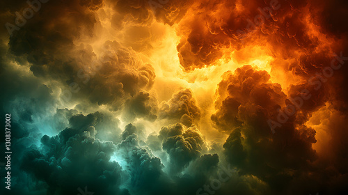 sky, cloud, colours, orange, yellow, teal, gold, fire, smoke, abstract, texture, storm, weather, energy, vapour, atmosphere, bright, light, heaven, nature, space, glow, cosmic, fluffy, pattern, artistic, dynamic, dramatic, vibrant, illumination, airy, aethereal, cloudy, nebulous, layered, dark, dense, intense, aglow, evolving, surreal, formation, billowing, expansive, huge